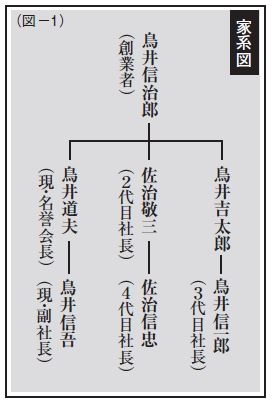 ここで、「ファミリーカンパニー」サントリー創業家の家系を簡単に説明しておこう。(図参照)