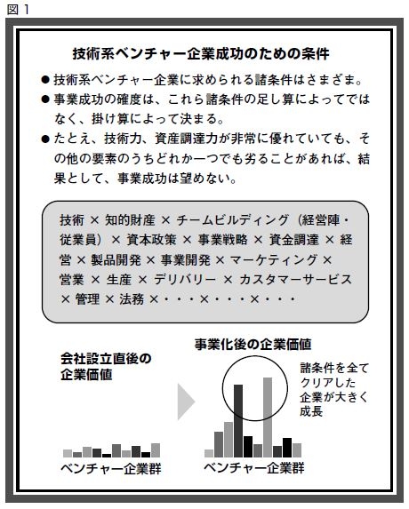 ベンチャーキャピタルという仕事柄、「大学発ベンチャーが成功するための条件は何ですか」という質問を受ける。すべての企業で言えることと思うが、技術だけではなく、製品とサービスの開発、ビジネスモデルを含めた事業の開発、資金管理や経営を含めた諸条件が必要で、それらを担う全員が協力し合って仕事をしていなければならないと思う。