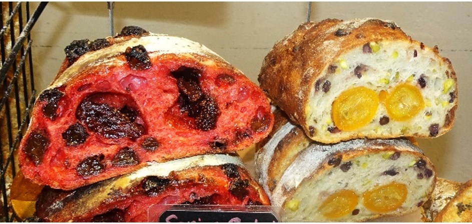季節感を大切にする五十嵐シェフ。「春のいちご」の美しい赤色には目を奪われる。苺果汁を入れた赤色の生地に苺とミルクチョコとレーズンがぎっしり。甘酸っぱさとチョコの甘さが絶妙だ。「春の訪れ」は、断面が可愛らしく見ているだけでワクワクする。金柑香るもっちりした生地に、ピスタチオとカレンズ、蜜漬けの金柑がごろごろ入っている。まさに春を感じさせるアイテムだ。