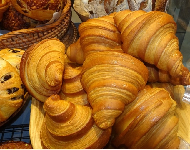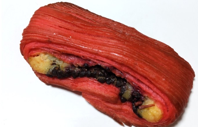 ここでの人気は、進化系クロワッサン「パンスイス」だ。中でも赤色が鮮やかな「フランボワーズ」が人気だ。また真っ黒の色合いの「カカオ」も人気という。更にここには折込み生地を使った「エスカルゴ」も4種類を揃えている。