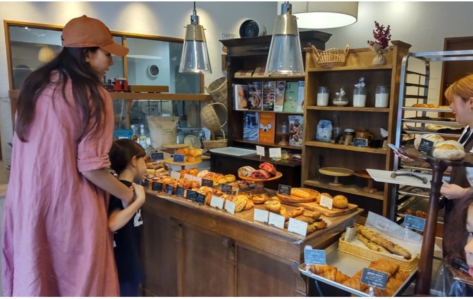 1号店だけでは物足りないと五十嵐シェフ、2024年7月には、押上のスカイツリー近くに2号店「es feuilletageエスタージュ」をオープンした。こちらは観光地ということもあり、「旅先で食べられるパン屋さん」をテーマに、折込み生地を中心とした商品を揃えている。スカイツリーの真下ということもあり、観光客も多い。