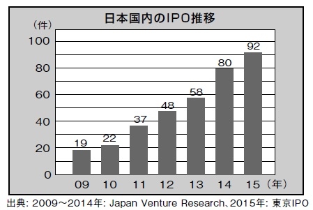 国内のIPO企業数は、2015年には92社となり、2009年に底を打って以来6年連続の増加となった。また、国内のM&A(企業の合併・買収)件数も2012年以来増加傾向であり、2015年には2500件近くにまでなった。国内企業が国内企業をM&Aするケース(IN-IN)に加え、外国企業が日本企業を買収するケース(OUT-IN)も増加しており、UTECでも米国や中国の事業法人(グーグル、百度など)とのM&A事例が出始めてきている。