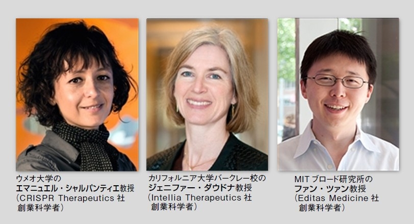 他方、CRISPR-Cas9の知的財産に関しては、2014年に最初に米国特許を取得したのはツァン教授の属するMITだった。ツァン教授は、自分自身が最初の「発明者」である証拠として実験ノートを提出し、先に論文を発表していたダウドナ教授やシャルパンティエ教授のCRISPR-Cas9の「発明」は自分より後だったと主張し認められたのだ。そのため特許紛争が巻き起こり、関係者間のeメールまでもが法廷で取り沙汰されて争われる泥仕合に発展している。ヒトでのCRISPR-Cas9を用いた臨床試験も始まっていない。