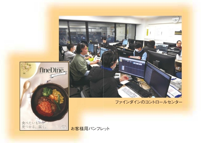 ライドオン本社から徒歩10分ほどの東京・高輪のマンション。その2階にファインダインの拠点がある。ここにはファインダイン麻布店、高輪店、芝浦店の3つのコントロールセンターが集結。お客のオーダーを一気に受けている。注文が入ると、それぞれのレストランに発、出来上がり時間ファインダインの配員が料理を受け取、お客の自宅に届るという仕組みでる。ライドオン独のシステムが搭載れたパソコンは、それだけで店舗そのもの。オーダーを受ける店長にも緊張感が走る。