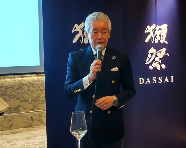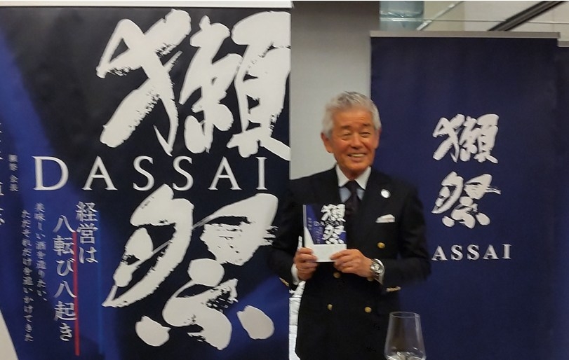 11月某日昼、東京・港区六本木のレストランには多くのメディア関係者が詰めかけていた。夜には賑やかなこの街も、昼は静かだ。会場で皆の注目を集めていたのは、株式会社獺祭の桜井博志会長だ。この日も紺のダブルのスーツで決め、ダンディだ。
