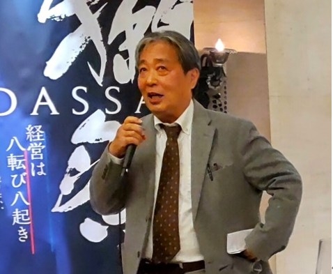 次にモスフードサービスの前会長、櫻田厚氏が登壇。「弘兼先生の紹介で桜井会長と御縁を頂きました。獺祭は日本の誇り。メイド イン ジャパンを発信する企業として、1000億円企業となることを期待しています」とエールを送った。