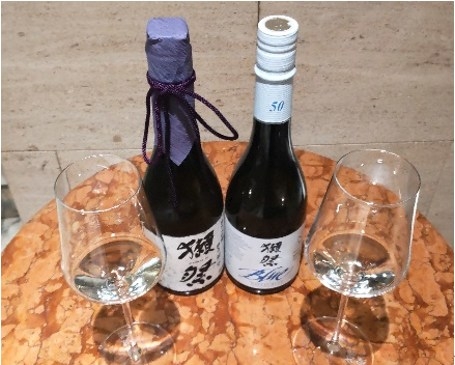 獺祭BLUE 50 (左)と、獺祭純米大吟醸磨き二割三分(右)