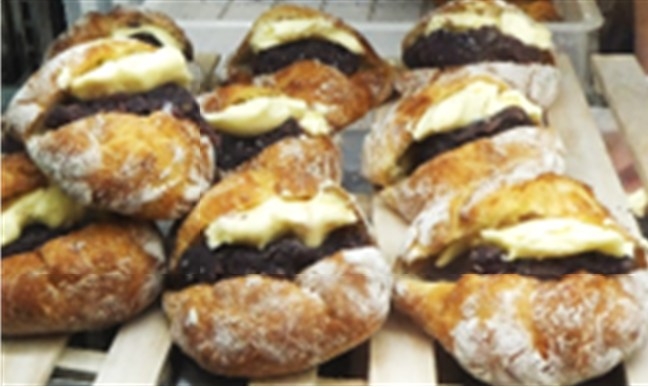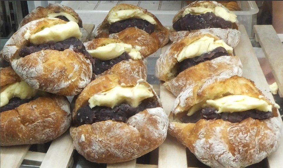 ここでの人気は、進化系クロワッサン「パンスイス」だ。中でも赤色が鮮やかな「フランボワーズ」が人気だ。また真っ黒の色合いの「カカオ」も人気という。更にここには折込み生地を使った「エスカルゴ」も4種類を揃えている。