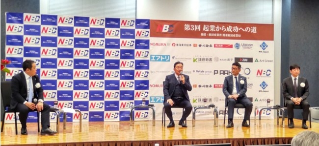 主催者のNBC会長の青木正之氏挨拶、アントレプレナー創出委員会委員長でNBC副会長の有本隆浩氏の挨拶で始まった。